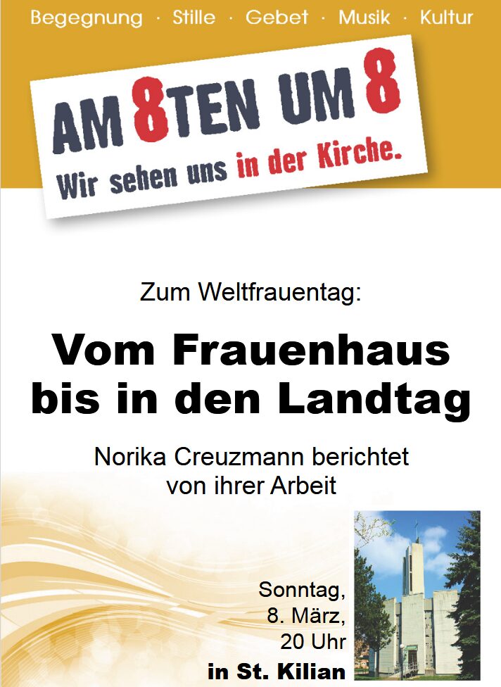 Die Dunkelfeldstudie der Bundesregierung hat Mitte Februar bedrückende Fakten geliefert: Häusliche Gewalt ist kein Randphänomen, sie betrifft Millionen Menschen im Land. Vor allem Frauen werden Opfer von Gewalt. Welche Hilfen gibt es für sie, was kann jede und jeder einzelne tun? Zu diesen Fragen hat die Initiative „Am 8. um 8 - Wir sehen uns in der Kirche“ am Weltfrauentag, Norika Creuzmann eingeladen. Die heutige Landtagsabgeordnete hat viele Jahre in einem Paderborner Frauenhaus gearbeitet. Der Abend beginnt um 20 Uhr in St. Kilian.