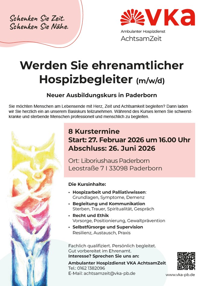 Sie möchten Menschen am Lebensende mit Herz, Zeit und Achtsamkeit begleiten? Dann laden